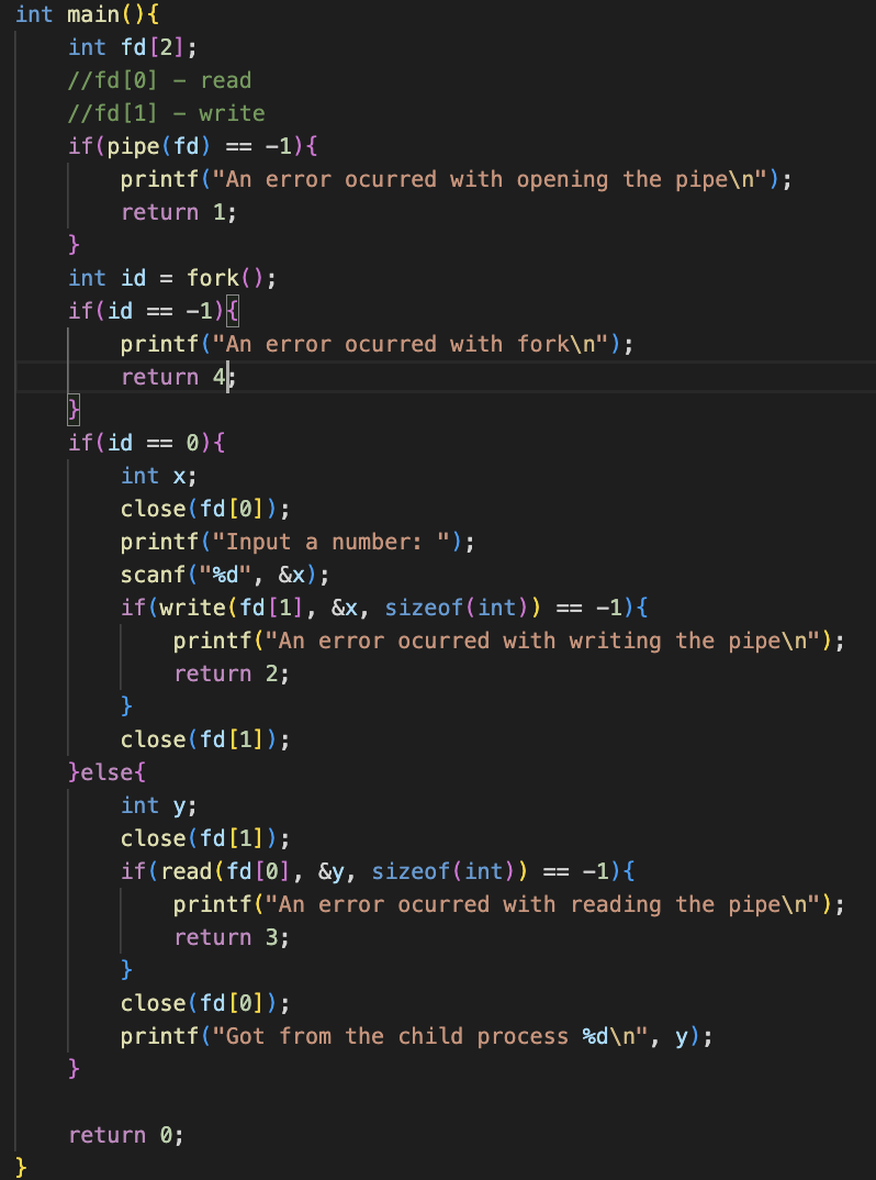 fd[0]에서 읽고, fd[1]에서 쓴다.